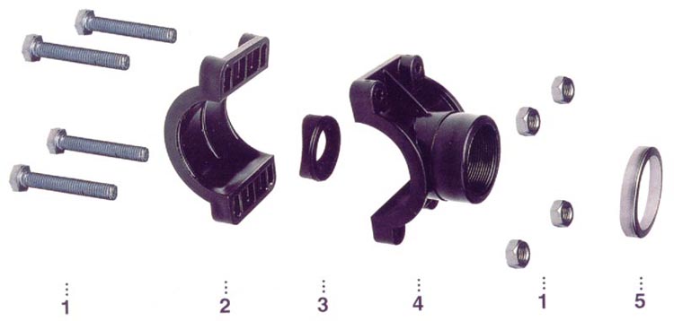 Основными компонентами, из которых состоит седелка, являются пластиковые хомуты, набор болтов с гайками для обжима хомутов, а так же резиновое уплотнительное кольцо. Данная конструкция плотно прижимается болтами к трубе, а уплотнительное кольцо создает дополнительную герметичность соединения. Седелка может иметь два выхода под резьбу. Такие варианты используются в системах орошения, сокращая тем самым количество хомутов на длинных расстояниях трубопровода. Седелка плотно прижимается болтами к трубе, а уплотнительное кольцо создает дополнительную герметичность соединения. Отверстие в ПНД трубе, на которую предварительно надето седло с хомутом, следует делать прямо через резьбовой отвод шуруповертом со специальным сверлом или прорезать дыроколом.